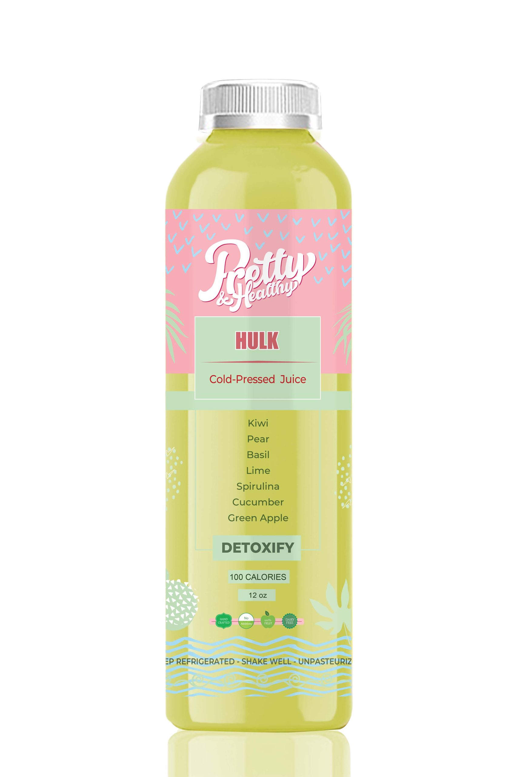 12oz Packed with Green Apples, Pineapple, Cucumber, Kiwi, Ginger, Basil, Spirulina, and Limes, offering a powerful blend of nutrients for wellness and hydration