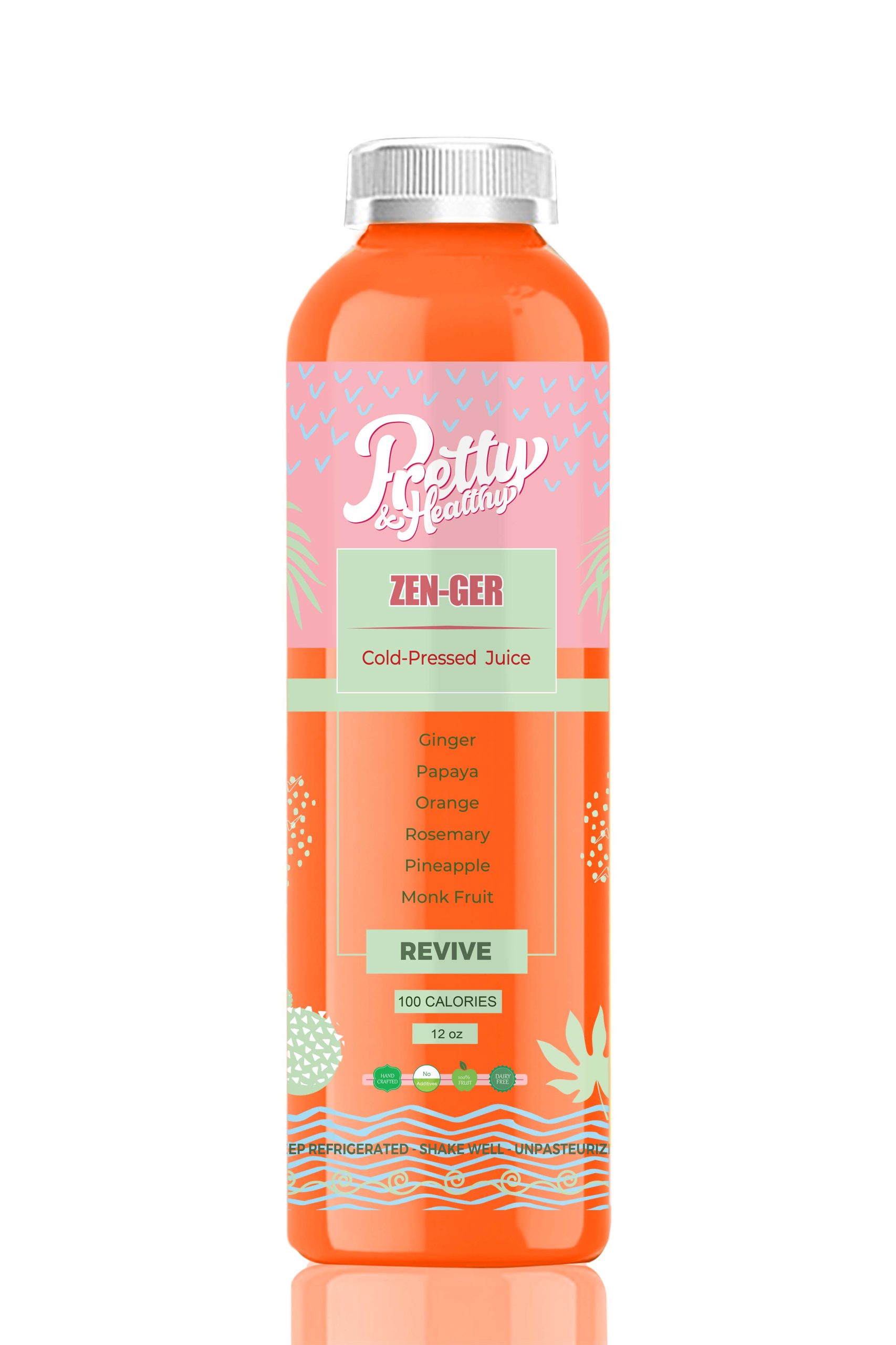 Papaya, Oranges,Rosemary, Pineapple, and Monk fruit blend into a vibrant, refreshing 12 oz wellness juice.